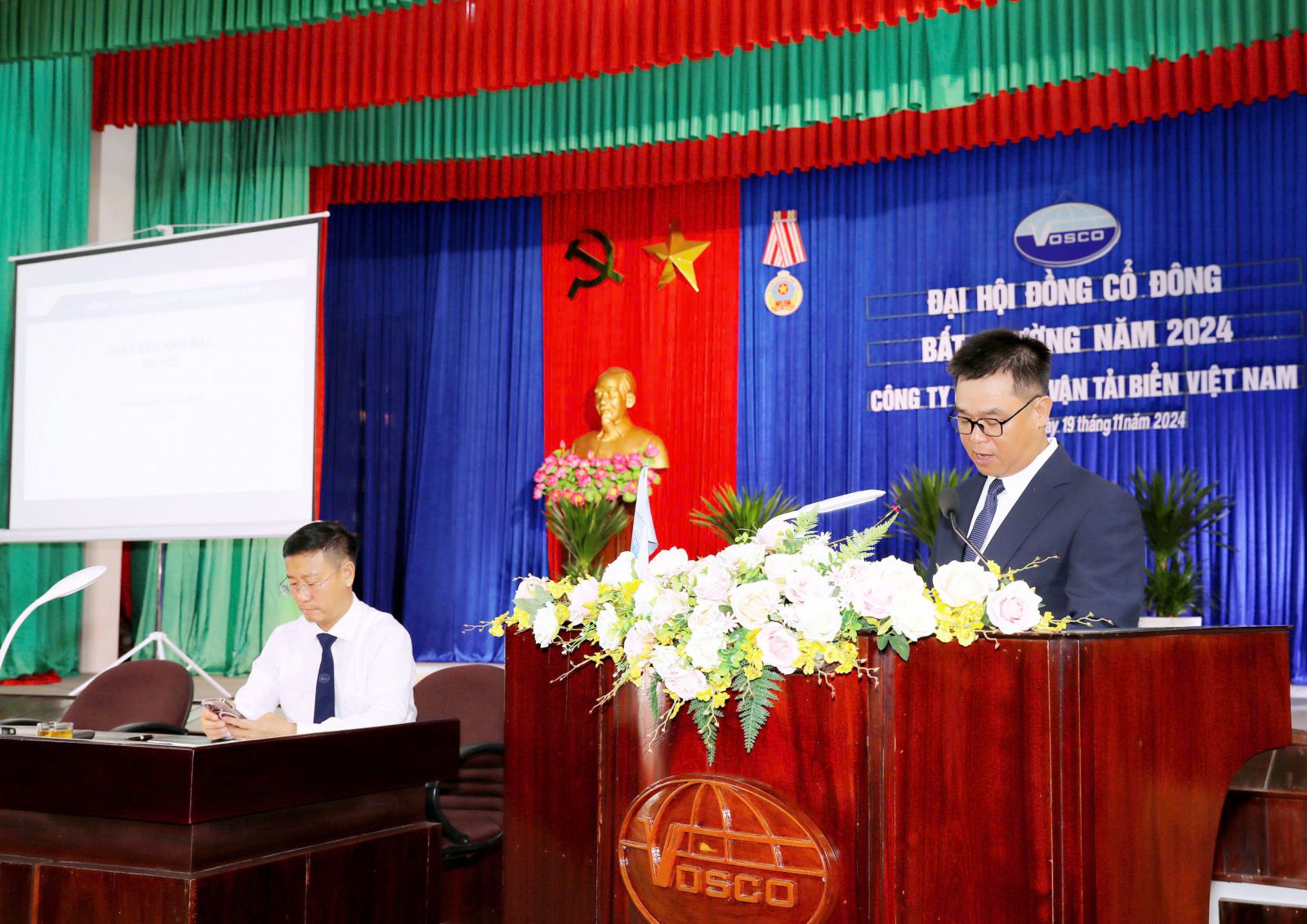 Tại Đại hội, ông Nguyễn Quang Minh, Thành viên Hội đồng Quản trị, Tổng giám đốc Công ty báo cáo với các cổ đông: Kể từ năm 2021 đến nay, Công ty đã duy trì được hoạt của đội tàu ổn định định và hiệu quả, đồng thời, đều hoàn thành vượt mức các chỉ tiêu kế hoạch kinh doanh. Đến hết năm 2023, Công ty đã hoàn thành việc tái cơ cấu với toàn bộ các ngân hàng. Bên cạnh việc duy trì ổn định hoạt động của đội tàu và kinh doanh hiệu quả, Công ty xác định việc phát triển tàu là nhiệm vụ vô cùng quan trọng và cấp thiết để có thể duy trì được năng lực vận chuyển và khả năng cạnh tranh trên thị trường. Đồng thời, giúp Công ty có phương tiện vận tải để triển khai các giải pháp khai thác linh hoạt, có thể tham gia được vào những tuyến vận tải hiệu quả hơn nhưng cũng có yêu cầu khắt khe hơn về tình trạng kỹ thuật và chất lượng tàu. Công ty sẽ phát triển đội tàu bằng nhiều hình thức như thuê tàu, thuê mua, đóng mới, mua tàu đã qua sử dụng một cách phù hợp… theo hướng tập trung vào các tàu chuyên dụng và hiện đại để có thể đáp ứng được yêu cầu ngày càng khắt khe về kinh doanh và bảo vệ môi trường. Với nhiều năm liên tục kinh doanh có lãi, tình hình tài chính được cải thiện rõ rệt, Công ty đã thu về nguồn lực quan trọng để phục vụ cho kế hoạch đầu tư, phát triển đội tàu.