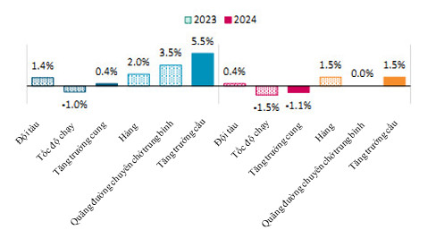 - Chúng tôi dự đoán nhu cầu đối với tàu chở dầu thô trong năm 2024 sẽ tăng thêm khoảng 4,5%-6,5% so với năm 2022, trong khi nguồn cung tàu bị giảm sút khoảng 0,6%. Tương tự đối với thị trường vận tải tàu dầu sản phẩm, chúng tôi dự kiến tăng trưởng đối với nhu cầu là khoảng 6%-8%, trong khi đó, nguồn cung tàu bị sụt giảm khoảng 0,7%.
