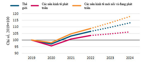 - Quỹ Tiền tệ Quốc tế (IMF) dự đoán tăng trưởng tổng sản phẩm nội địa (GDP) toàn cầu là 2,9% vào năm 2023 và 3,1% vào năm 2024 nhưng nhấn mạnh rằng cán cân rủi ro vẫn nghiêng về hướng tiêu cực.