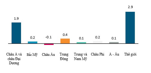 Sự thay đổi trong tiêu thụ dầu năm 2024 so với năm 2022, triệu thùng/ngày