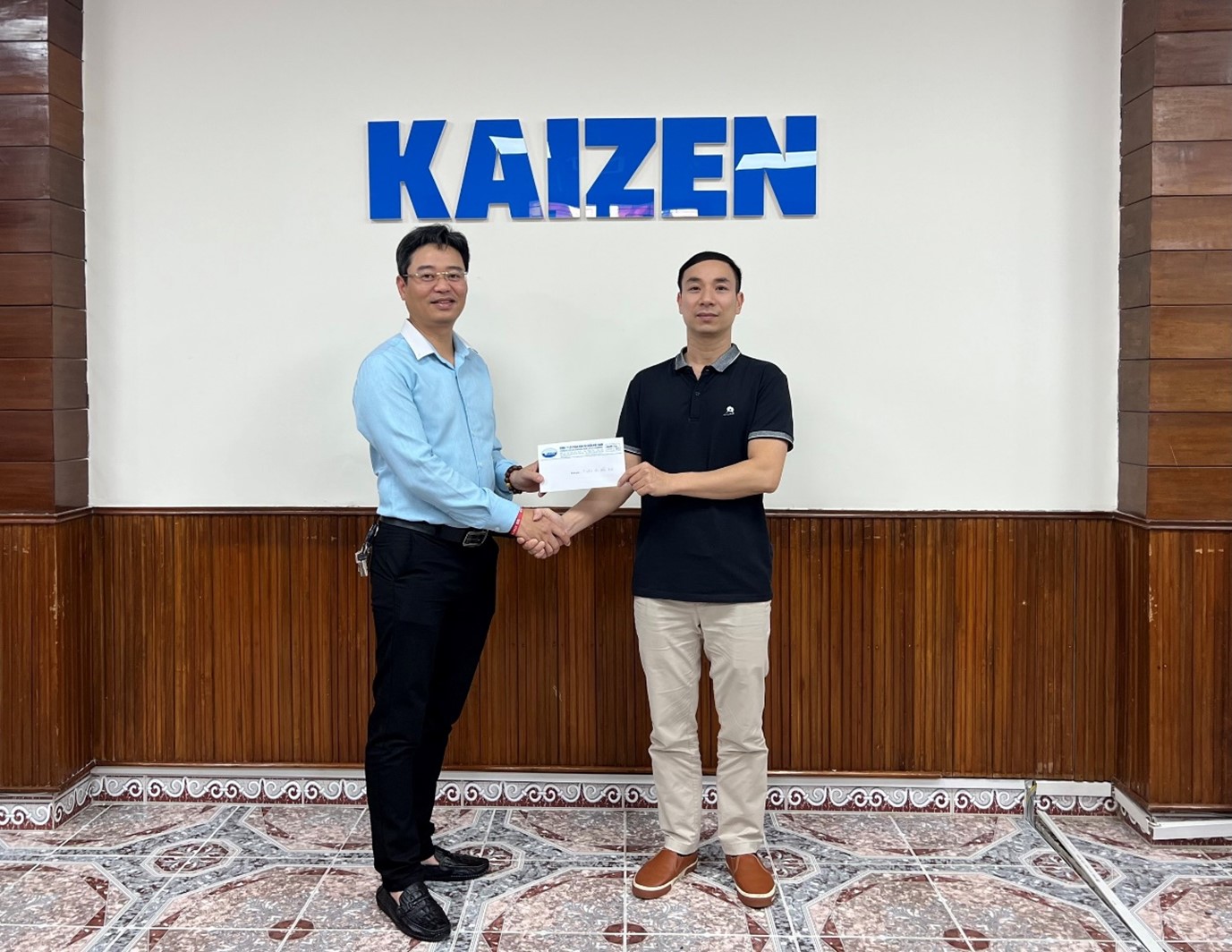 (Ảnh: Ông Đặng Hồng Trường, Phó Tổng giám đốc, Tổ trưởng Tổ công tác Kaizen Vosco trao tặng phần thưởng cho đại diện phòng Vận tải Dầu khí, đơn vị dẫn đầu về số lượng Kaizen được thực hiện và số Kaizen định lượng được giá trị làm lợi trong quý 1/2023 của Vosco)