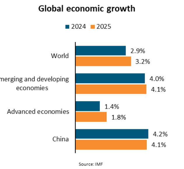 Năm 2025, tình hình kinh tế được dự báo là có sự cải thiện do lãi suất tại các quốc gia phát triển được nới lỏng/điều chỉnh giảm. Tuy nhiên, tăng trưởng kinh tế toàn cầu được cho là vẫn dưới mức 3,7% - mức bình quân tăng trưởng trong giai đoạn 2010-2019.