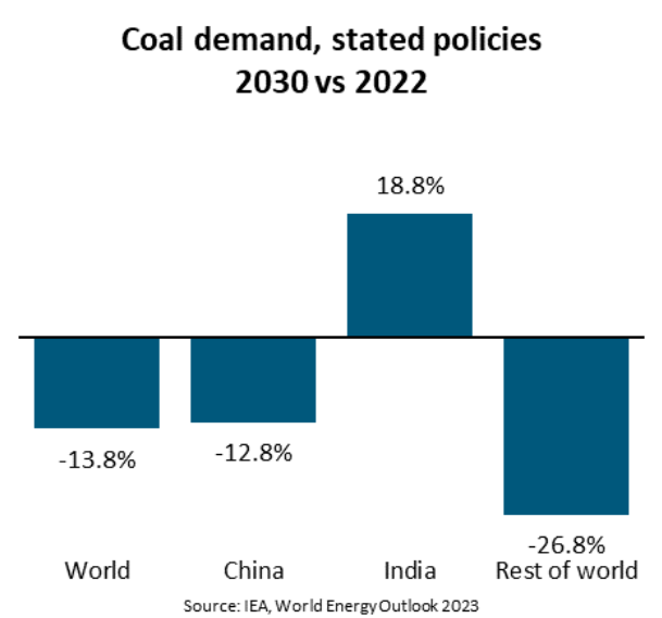 Theo Cơ quan Năng lượng Quốc tế (IEA), nhu cầu than toàn cầu sẽ đạt đỉnh vào giữa những năm 2020. Thời điểm cụ thể không được xác định và có thể đó là năm 2023. Đến năm 2030, trong một kịch bản đầy kỳ vọng hướng đến mục tiêu giảm biến đổi khí hậu, IEA đã dự báo nhu cầu than toàn cầu giảm 13,8% so với năm 2022, dựa trên dữ liệu về những chính sách được đưa ra của các chính phủ. Tại Trung Quốc, quốc gia tiêu thụ và nhập khẩu than nhiều nhất, sản lượng của các nhà máy nhiệt than có thể đạt đỉnh vào khoảng trước hoặc sau năm 2025. Bên cạnh đó, nhu cầu tiêu thụ than đang giảm ở rất nhiều nền kinh tế phát triển.