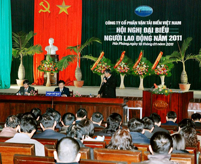 Thực hiện Nghị định số 87/2007/NĐ-CP của Thủ tướng Chính phủ về việc Ban hành Quy chế thực hiện dân chủ ở công ty cổ phần, công ty trách nhiệm hữu hạn, ngày 18/1/2011, tại trụ sở chính số 215 Lạch Tray, Hải Phòng, công ty cổ phần Vận tải biển Việt Nam đã tổ chức Hội nghị Đại biểu người lao động năm 2011.